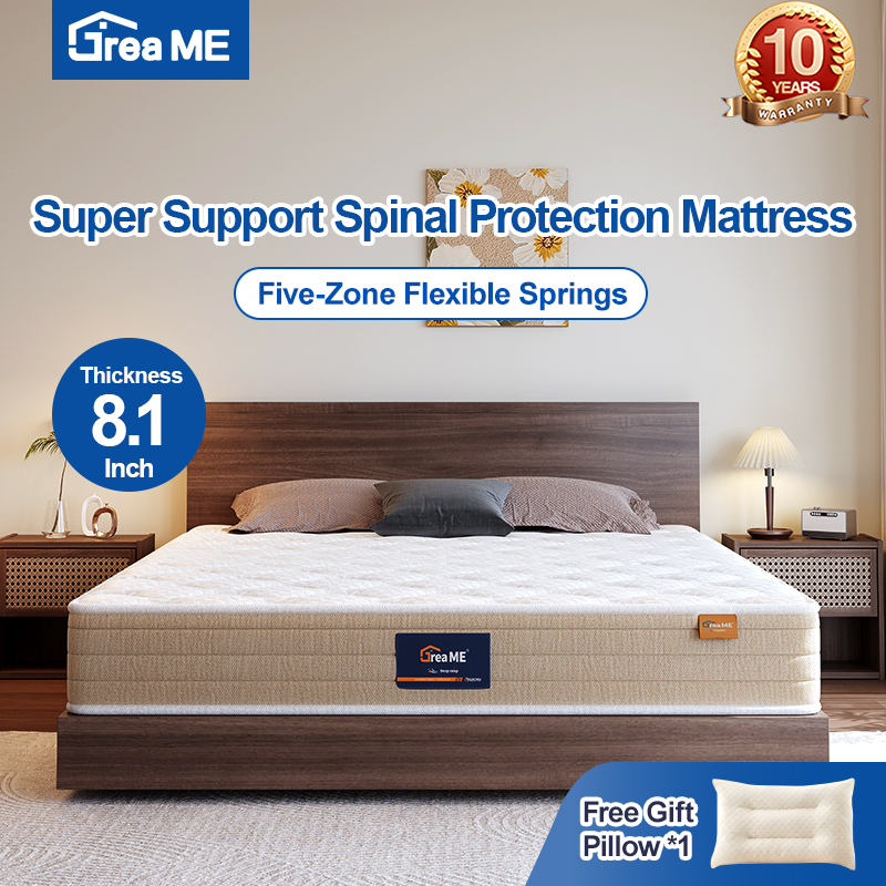 Experience targeted spinal alignment and deep restorative sleep with the Dreame 8.1 Inch Super Support Spinal Protection Mattress, engineered with a five-zone flexible spring system for personalized comfort.